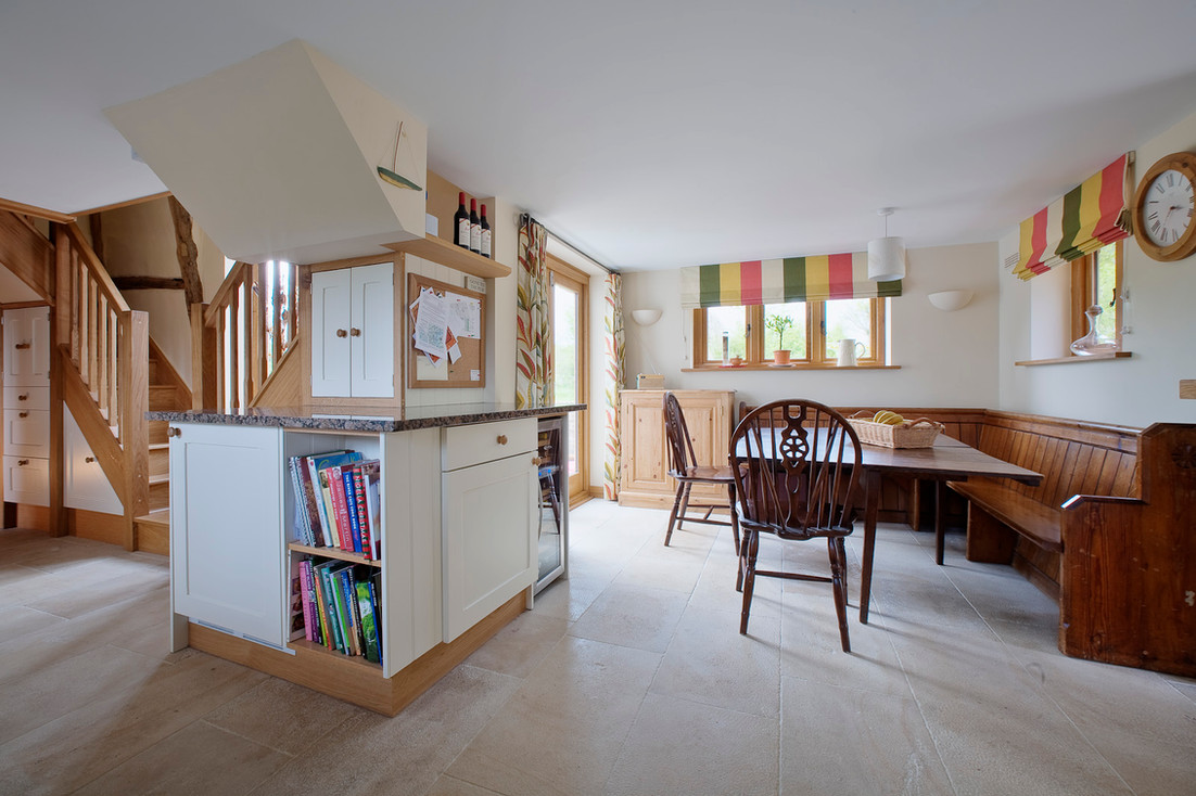 Ram’s Cottage is a Grade II listed building located near Dunsfold in Surrey. The building is timber-framed with brick and render infill and a clay-tiled roof. The original cottage was extremely small and the new owners needed a larger kitchen and family area and a new master bedroom on the first floor. The proposal included a new two storey extension and the partial demolition of an existing 1970s side extension. The new extension was designed to sit comfortably with the old listed cottage with the use of traditional materials such as oak frames for the windows, clay tiles for the roof and rendered walls which blended in well with the existing painted brickwork of the original listed cottage. A new staircase had to be constructed to provide access to both the first floor of the original cottage and the new extension.