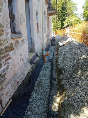 The property is located in the Alta Langa region in Piedmont and overlooks the French alps to the west. The house had been abandoned for sixty years and was in a very poor state of repair requiring structural works, roof repairs, damp-proofing, drainage and new services. As well as all the repair and restoration works required the internal spaces needed to be completely redesigned. The lower ground floor was not connected to the house as it had been used as part of the vineyard and was only accessible to the agricultural land at the rear. There is a small chapel building attached to the main house but this was only accessible through its own front door facing the road. A single toilet located on one of the rear balconies and a shower head under the main staircase were the only washing facilities. A new curved staircase was designed to connect the lower ground floor to the main house and the main staircase was removed and redesigned to allow for a new shower room at first floor level and a bathroom on the ground floor. The lower ground floor which previously had agricultural use was converting into a new kitchen, TV snug and a bedroom with en-suite.