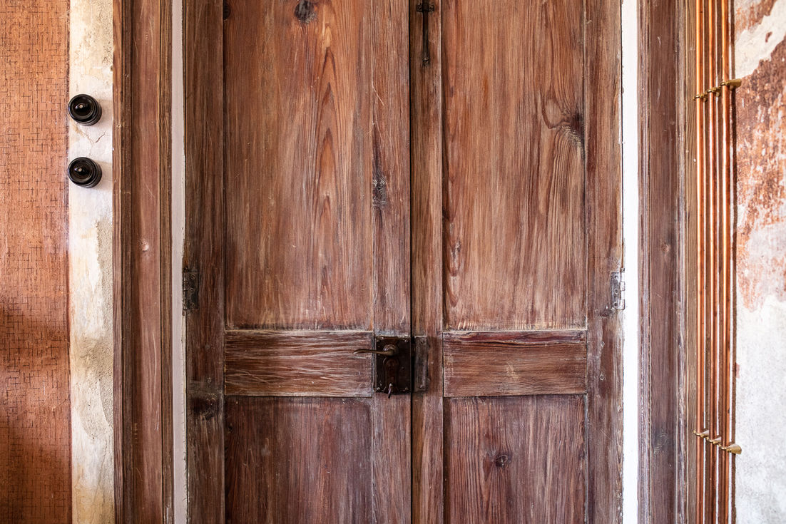 Every building should tell its story - The house has been restored to retain its character and the ruined appearance to both the internal and external wall finishes. Externally the water damaged render was removed exposing the brick and stonework behind which was then left visible and re-pointed. Internally many of the walls still had the original colored decorative plaster which had been badly water damaged. In these rooms the loose plaster was removed and replaced with a natural lime plaster making the repairs easily identifiable. This ensures that as much of the original building fabric can be retained and the history of the building clear to read.