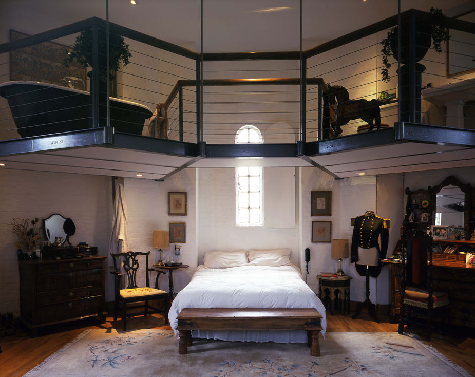Munstead Water Tower stands on top of a hill four miles south west of Guildford. Brick-built and 130ft high, it was erected in 1898 to supply water to the surrounding houses in Munstead and neighbouring villages and was in use for approximately 70 years. The Water Tower had been out of use for nearly twenty years and was sold at auction 1989. The refurbished and re-designed tower now consists of six floors with a reception room on the ground floor, and one bedroom on each of the first, second and third floors. One large room occupies each floor, varying from 25-30 feet across with suspended hanging bathrooms in the bedroom levels and a gallery within the living room. Allowing this beautiful old water tower to be converted into a residence has assured its future and provided an appropriate alternative use. The water tower is still my own home.